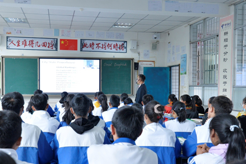 四川盐源民族中学电信班的学生通过天翼云课堂享受城市优质教育资源。
